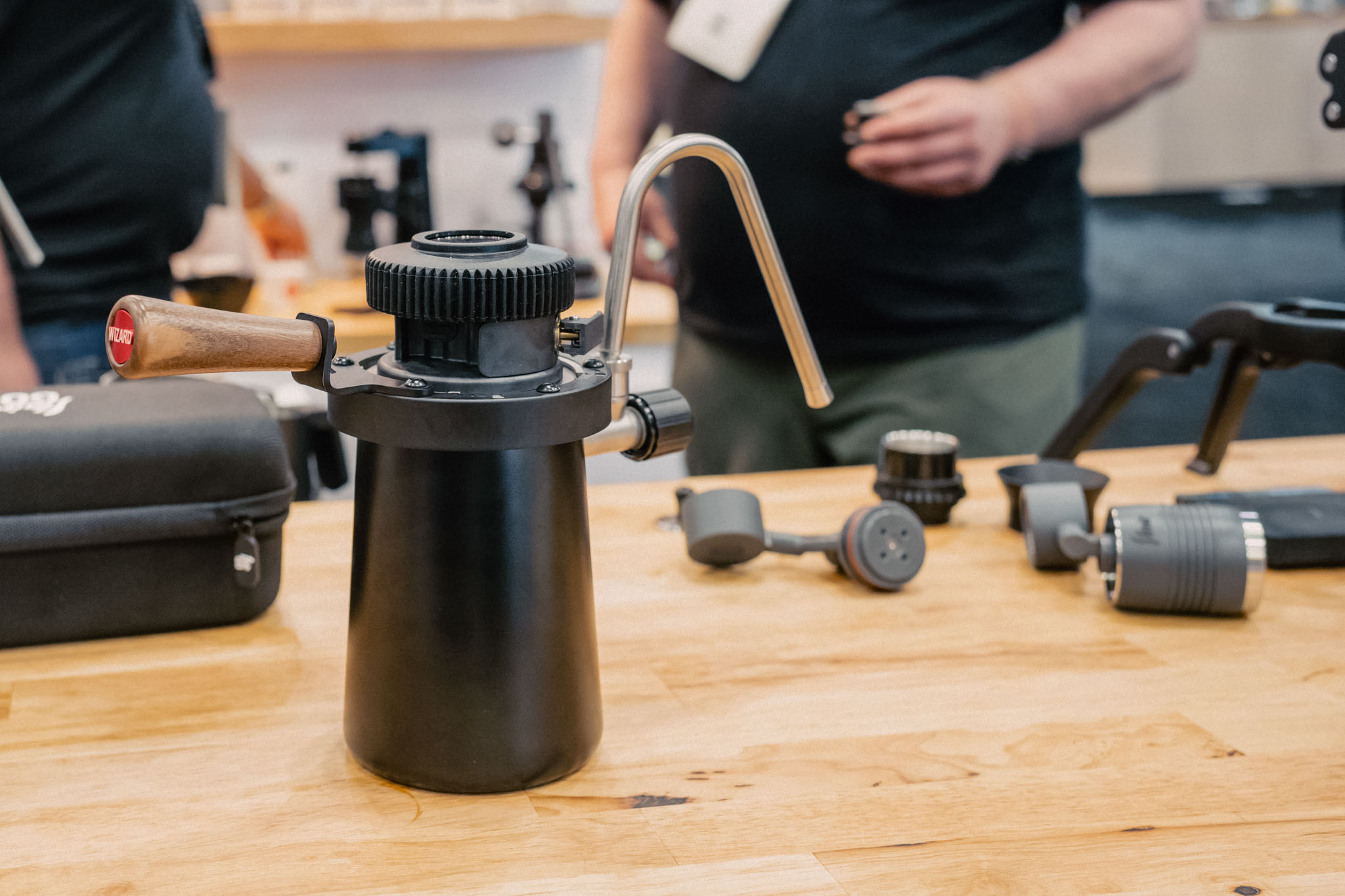 First and foremost, they were eager to show off the Flair Go Espresso Maker, which we currently have undergoing testing at CoffeeGeek headquarters, followed by the Flair Wizard Milk Steamer, which will get a review process on CoffeeGeek later this summer once it begins shipping.