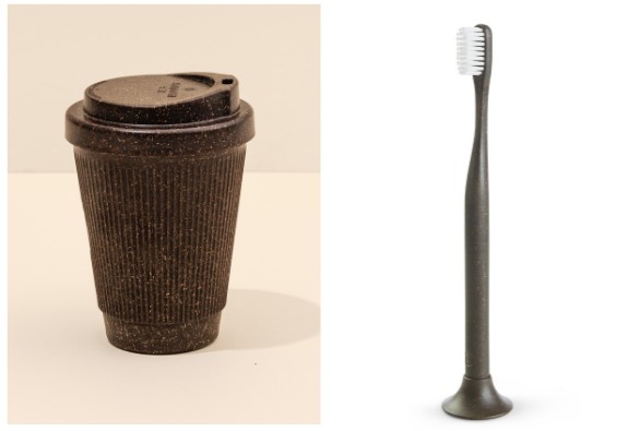 Luxury shoe company Nat-2 makes functionable, wearable, sustainable art. The owner, Sebastian Thies, is a 6th generation Munich-based shoe designer who incorporates natural objects (like mushrooms, coffee grounds, and stone) into his apparel. And if you’re into jewelry (like I am), British designer Rosalie McMillan has paired with Çurface to create a coffee-inspired line called Java Ore. Each piece is made with recycled sterling silver, 18K gold, and Çurface’s unique pressed coffee forms.