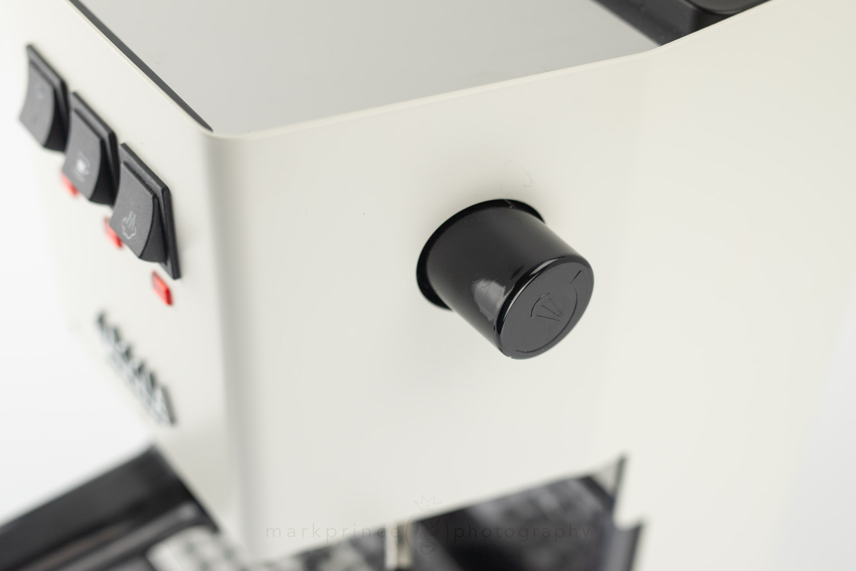 The right side of the machine sits the steam knob valve, which does allow for some control on the speed of the steam. It has no texture and can be a bit “slippy” in some situations. I’ve seen some end users wrap grip tape around it.