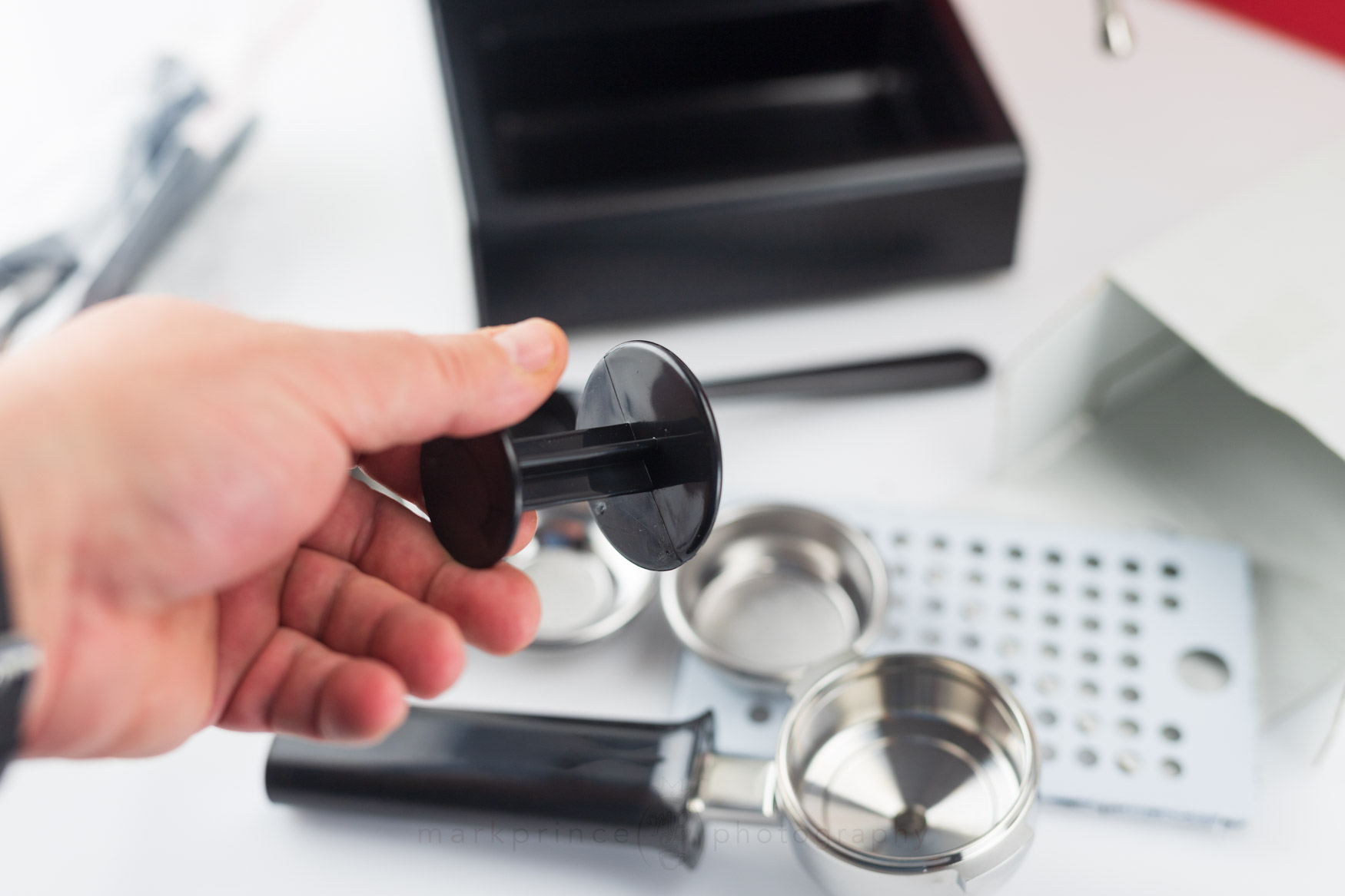 The stuff in the box was flopping around a bit, including metal on metal contact with the filter baskets and portafilter. It didn’t mar the finish on our test unit, but it could happen.