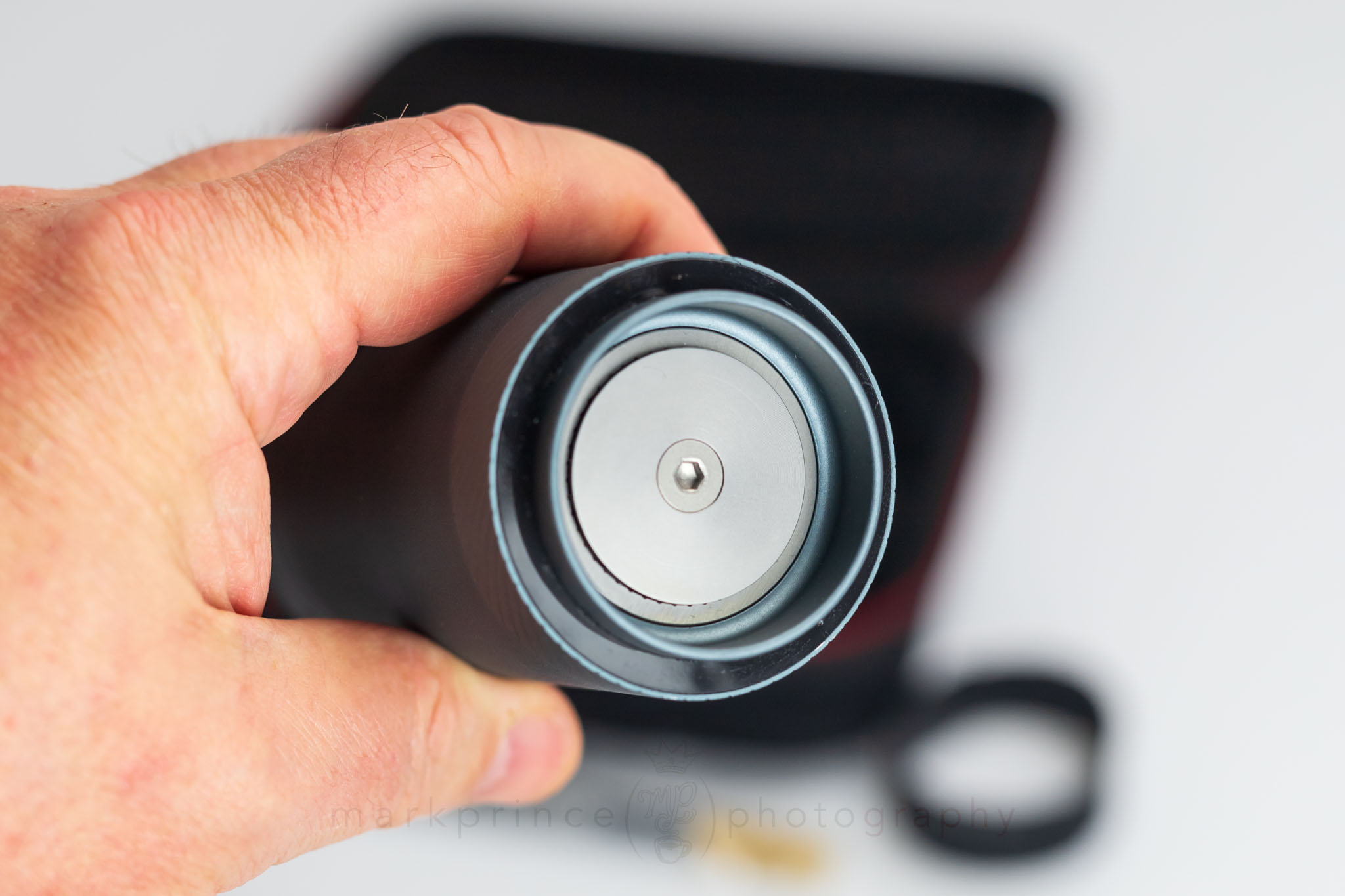 The grinder body itself makes an impressive first impression. Weighing about 590 g, it is heavier than some of the other travel grinders we’ve reviewed, but still light enough to toss in a bag with confidence. At 17.5cm tall and 5.5cm in diameter (6.7” x 2”), the X‑Ultra fits easily into most hands, though people with larger mitts will want to pay attention to how they grip it during more forceful grinding.