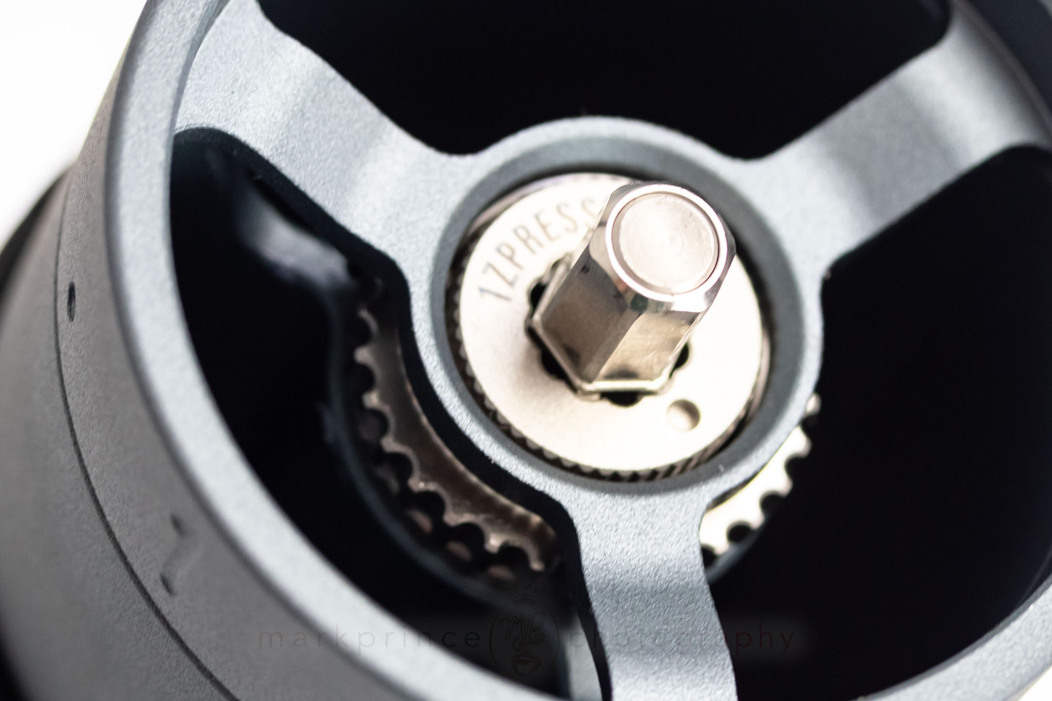 At the heart of the grinder is its 40 mm stainless steel heptagonal burr set, which has a distinct seven‑sided cutting profile. The machining and engineering design is crisp, with sharp edges that make quick work of dense beans. This burr geometry is designed to limit fines and highlight clarity in the cup. Mounted on a thick central driveshaft (which is powered drill compatible!), the burrs are kept centred by a dual‑bearing system. Unlike earlier grinders where burr alignment was more of a hope than a guarantee, here the stability is evident right out of the box.