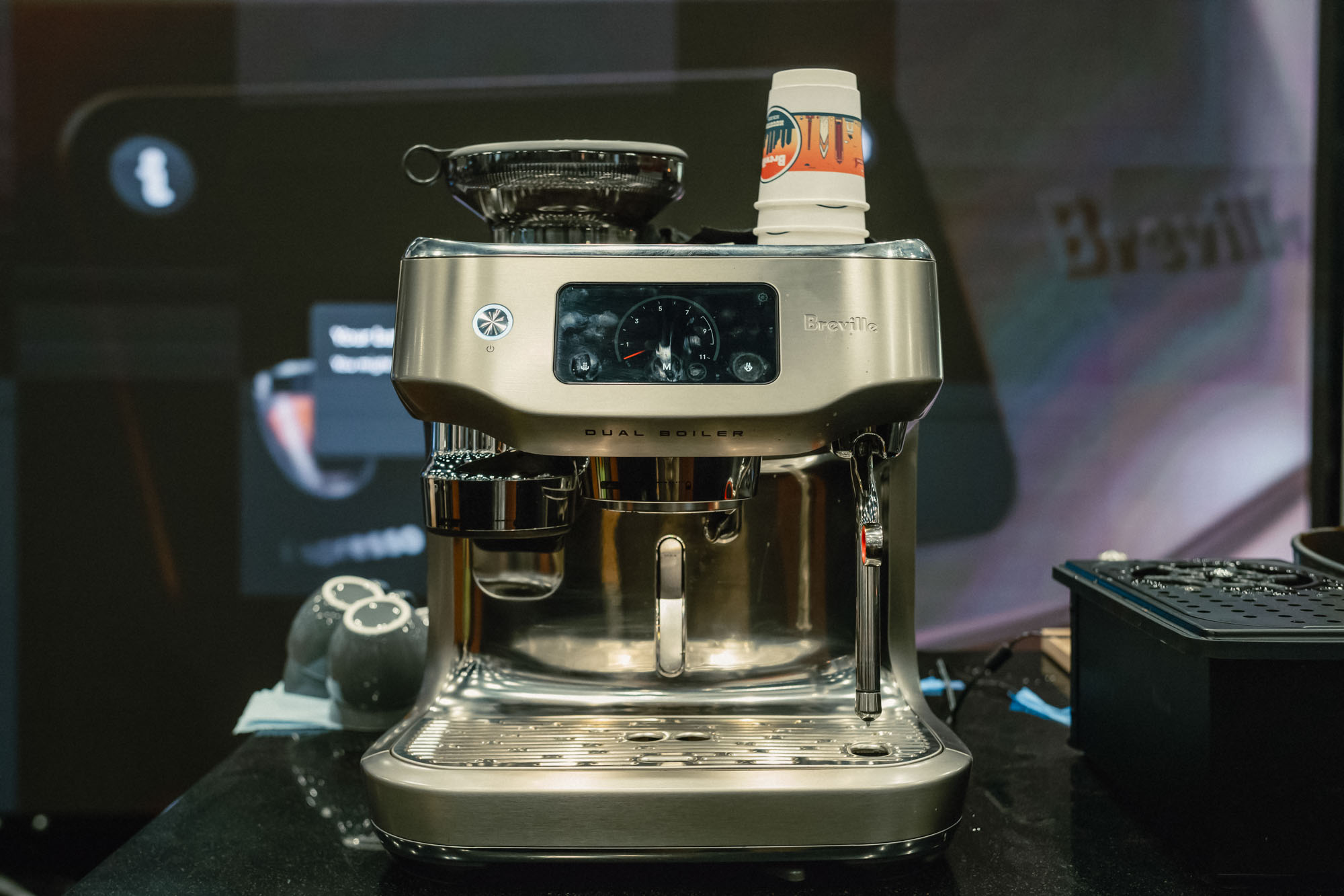 Over the course of a roughly half hour tour, Matthew Davis, the Americas Product Expert for Breville’s Coffee Portfolio, walked me through the more compelling upgrades to these two lines, starting with the biggest star— The Oracle Dual Boiler.