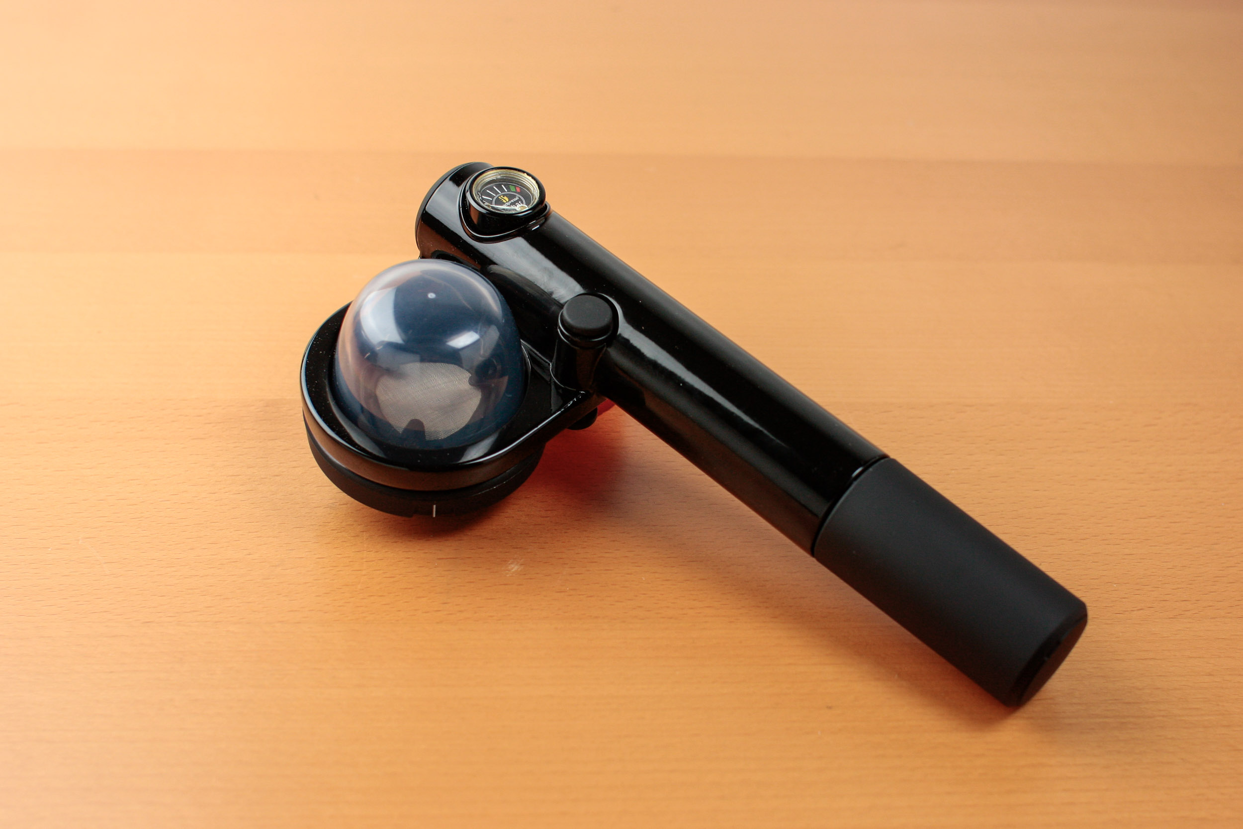 The next big device to come along and shake up this market was the Mypressi espresso brewer. It looked like a tool out of 2001: Space Odyssey. It was manual in that there was no pump, no on/off switch, but it used small nitrogen capsules, the same kind used in whip cream dispensers, to push water at high pressure through a bed of coffee. (ed.note – not sure if I’d call this a manual machine, given it uses gas pressure capsules).