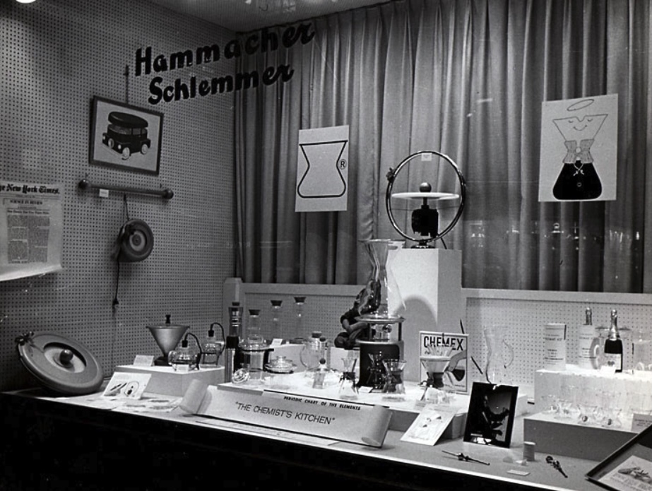 Hammacher Schlemmer was a big fan of Schlumbohm and his inventions. They were one of the first stores to sell the Chemex, his all glass water kettle (still sold today) and a few of his bartending gizmos.