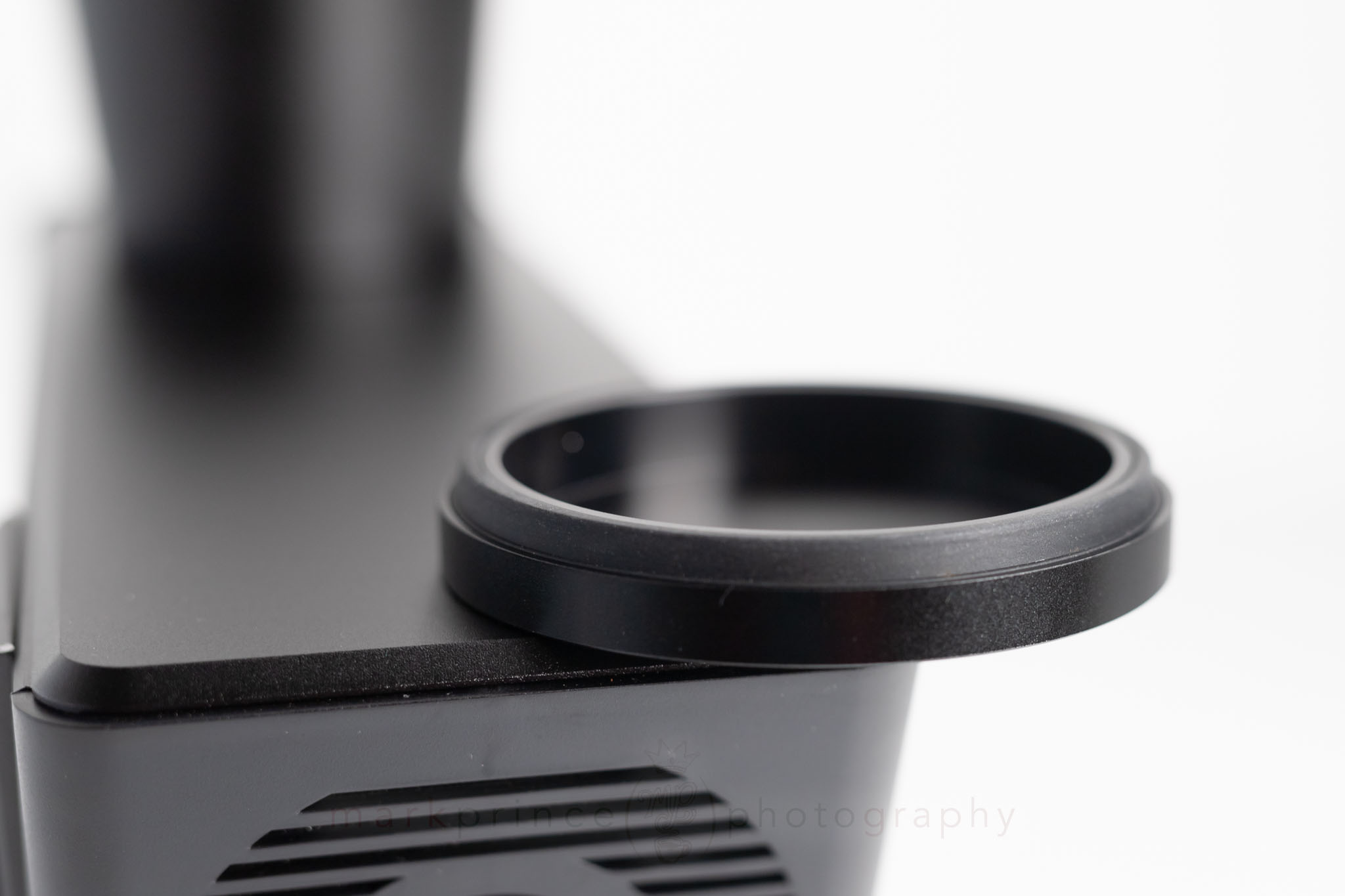 It feels nice enough at first. It’s a 50-gram magnetic container that slides into place with a satisfying snap, and the silicone base is a nifty touch that prevents scratching while still sliding securely. But the workflow is where it falls apart for me. Every time I tried to dose coffee into a 58mm portafilter basket, the cup got wedged, making it a PITA to remove. I quickly learned I can’t use it to dose on its own and have to pair it with a dosing collar, which feels redundant.