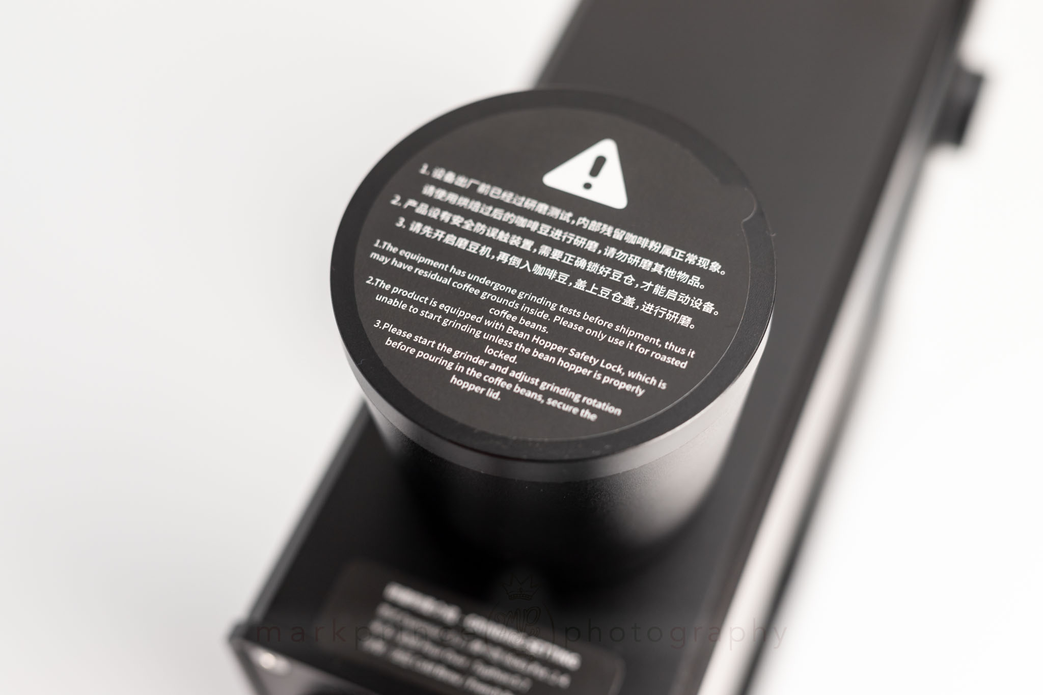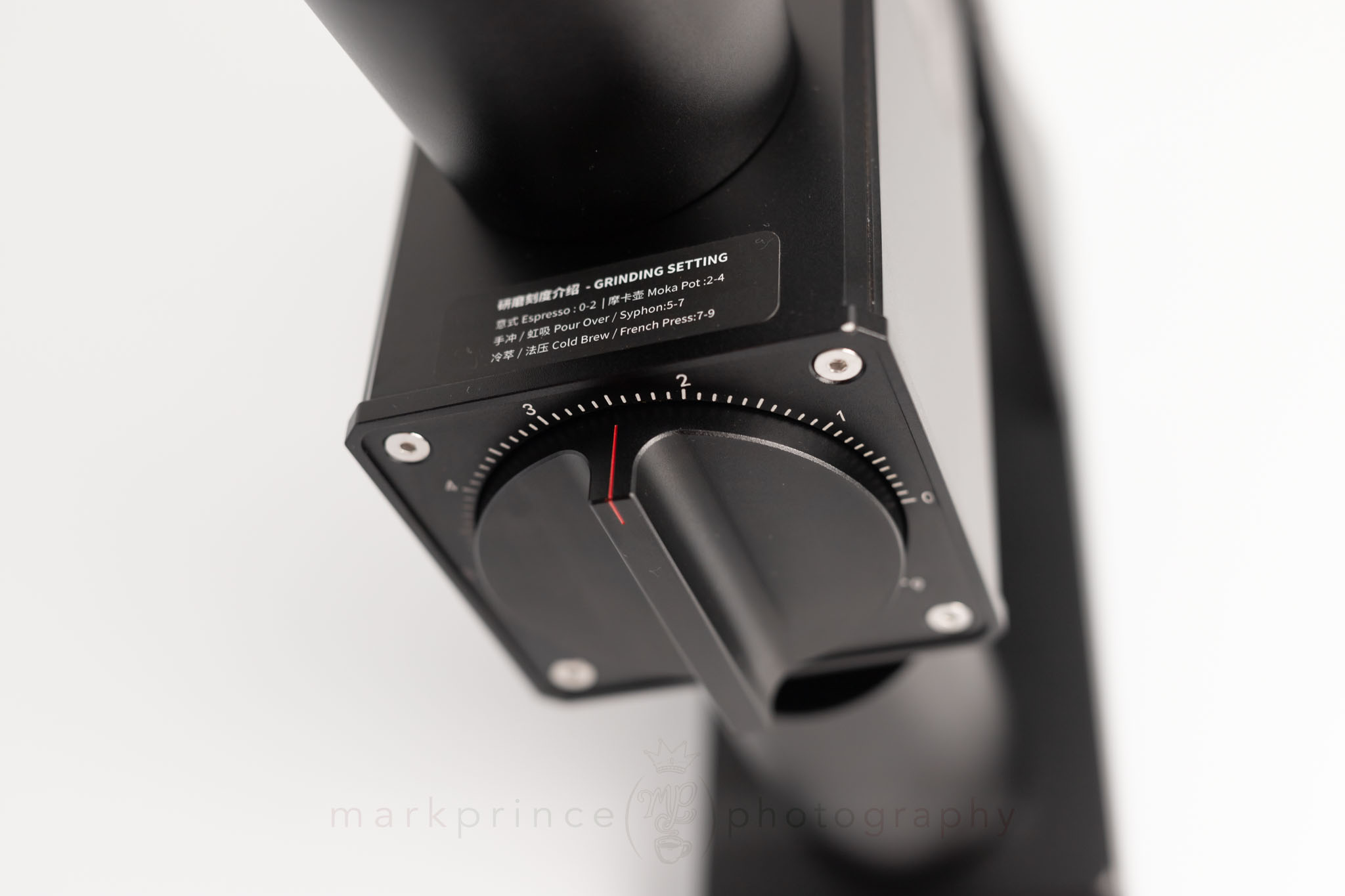 Front and centre sits the grind adjustment dial. The dial claims 90 “steps” on its visual indicators, and the manufacturer says each tick represents a 0.01mm burr movement. That’s plenty fine enough for espresso, though we’ll see if real-world use matches that claim in the full review.
