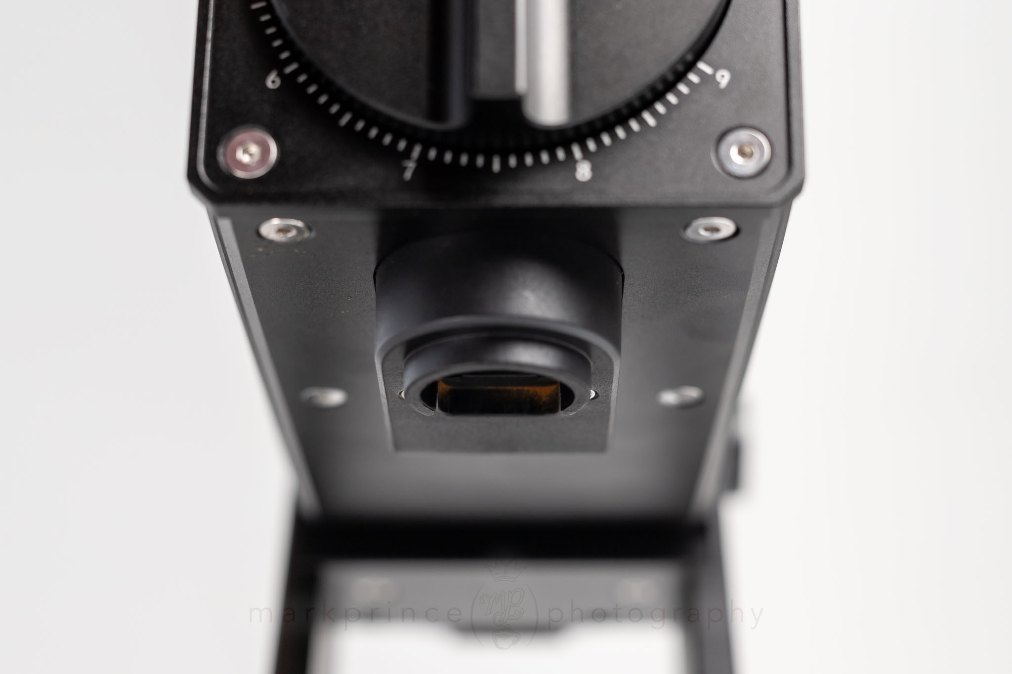 The burrs themselves, uniquely sized 74mm titanium‑coated flats, hide behind the front dial and mounting plate. If you peek down through the hole where the hopper sits, you see the machine’s auger system, itself attached to the unseen back burr plate. Out of the box, alignment is spot on excellent, at least with our test unit. The Ti coating is there for wear resistance and to keep grinding temperatures down, which should help preserve delicate flavours. On paper, this sits at the top of its class.