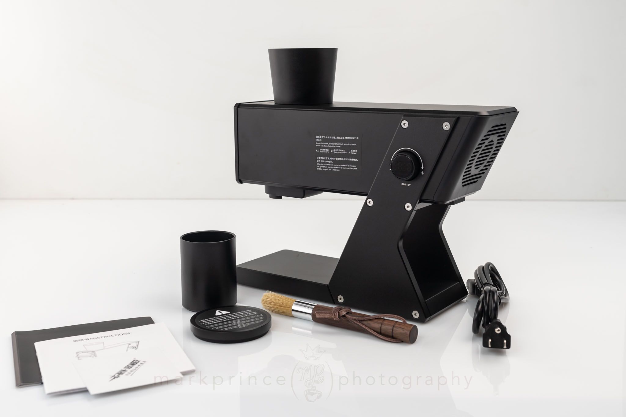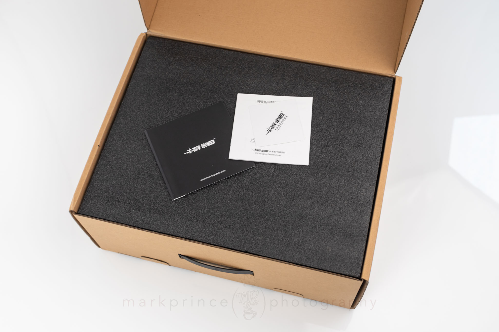 At 7.5 kilograms, you know you’ve received something substantial. The outer box is neat and I appreciate the eco-friendly limited use of printing and graphics on the brown cardboard, but crack it open and those feels change. You’re greeted with dense, custom‑cut polystyrene, shaped precisely to the grinder’s industrial frame. It’s effective armour for shipping, though a definite loss for the environment. Protective plastic bags cover the grinder and its parts.