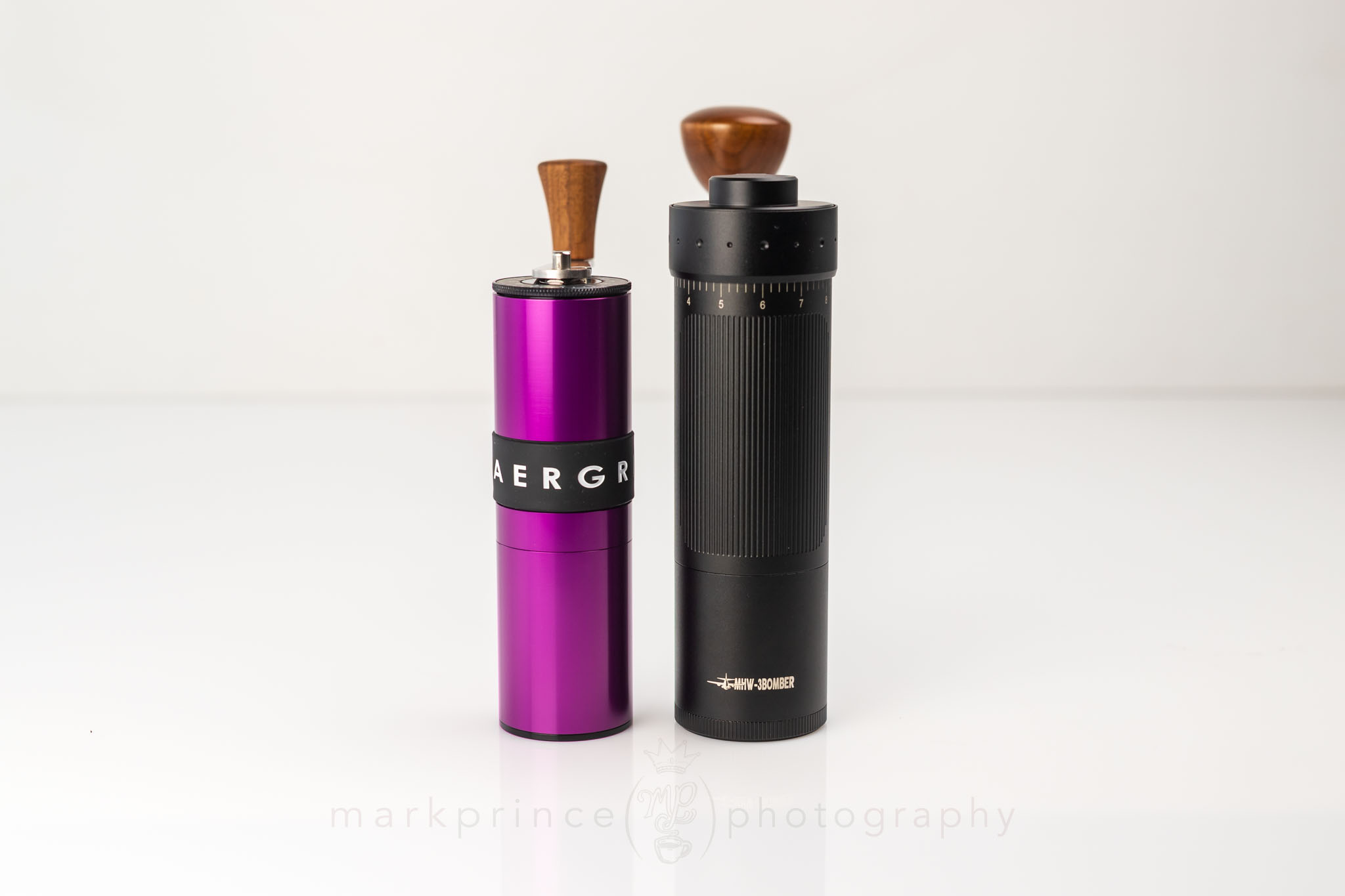 MHW-3Bomber Blade R3: A newer entry, the Blade R3 shares a few design philosophies with the Aergrind, including titanium-coated burrs, but it uses a stepped adjustment system rather than stepless. The R3 is heavier and more substantial, with a slightly larger footprint. Though it is bigger, the R3’s grind capacity is lower than the Aergrind.