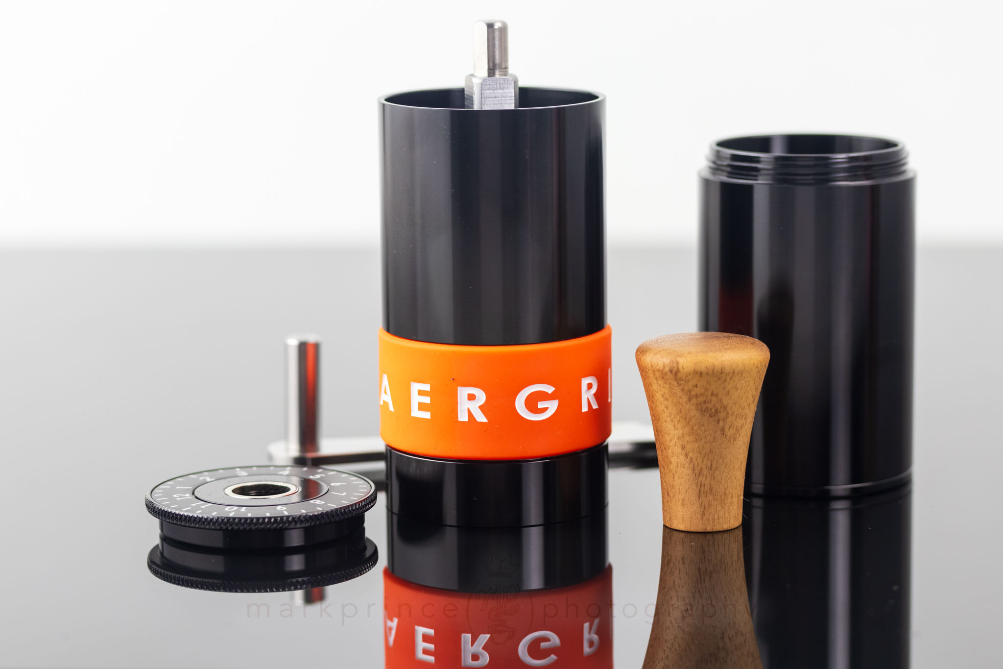 Every time you grab the Aergrind, it feels ready to get to work. This isn’t a shelf queen (though you could display it: it’s a fine piece of engineering art). The stepless grind adjustment is right up top, no bin-removing annoyances required. The laser-etched numbers up top on the grind dial pop clearly, so no squinting under a desk lamp to confirm your setting.