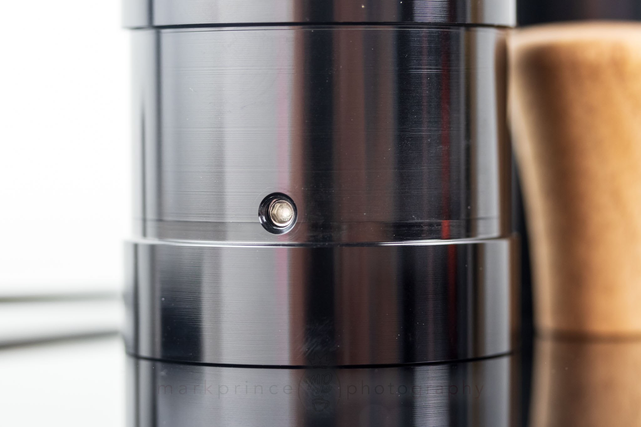 The grind catch bin is made from the same anodized aluminum as the main body, giving it a solid, premium feel. It features a threaded design that screws smoothly and securely onto the grinder base. The bin has a black aluminum bottom plate (no matter which colour of Aergrind you buy). Some reports online said it was plastic, but I can confirm it is metal.