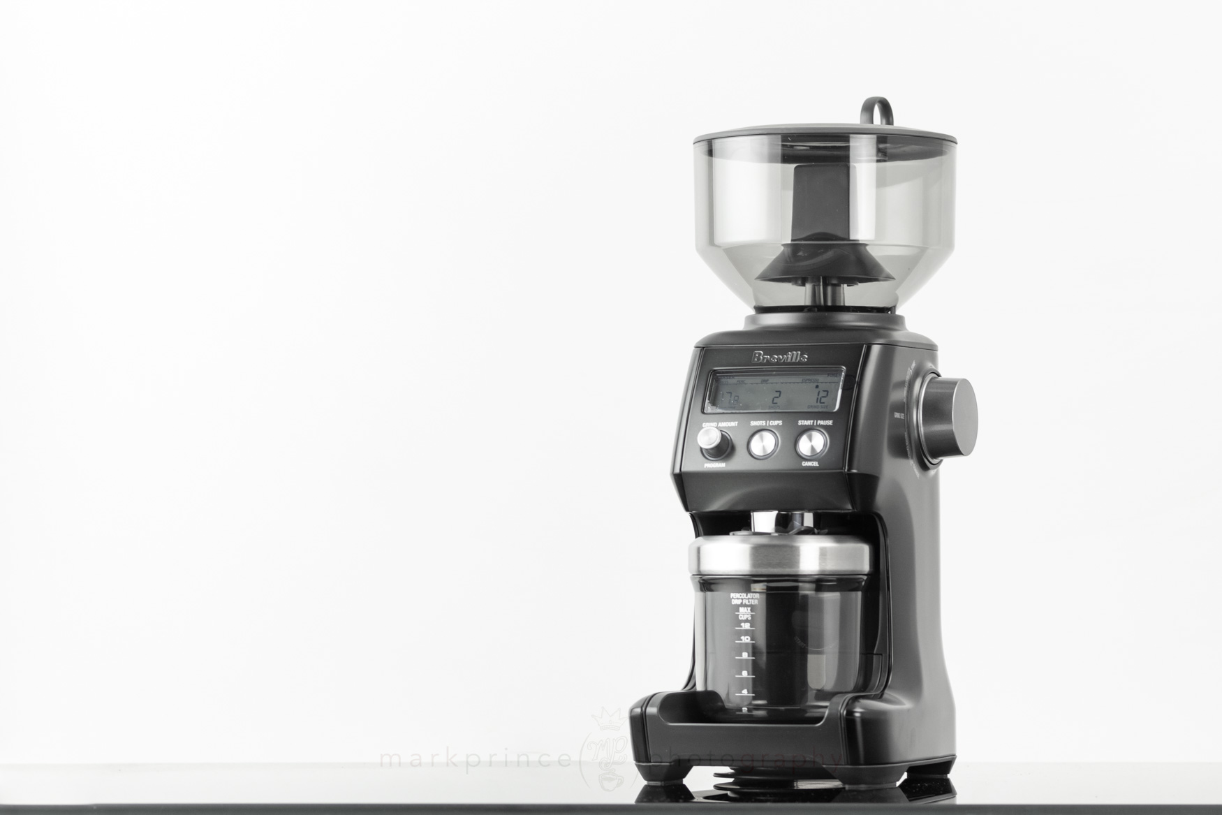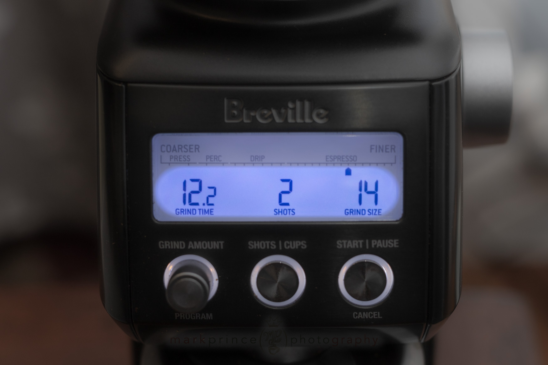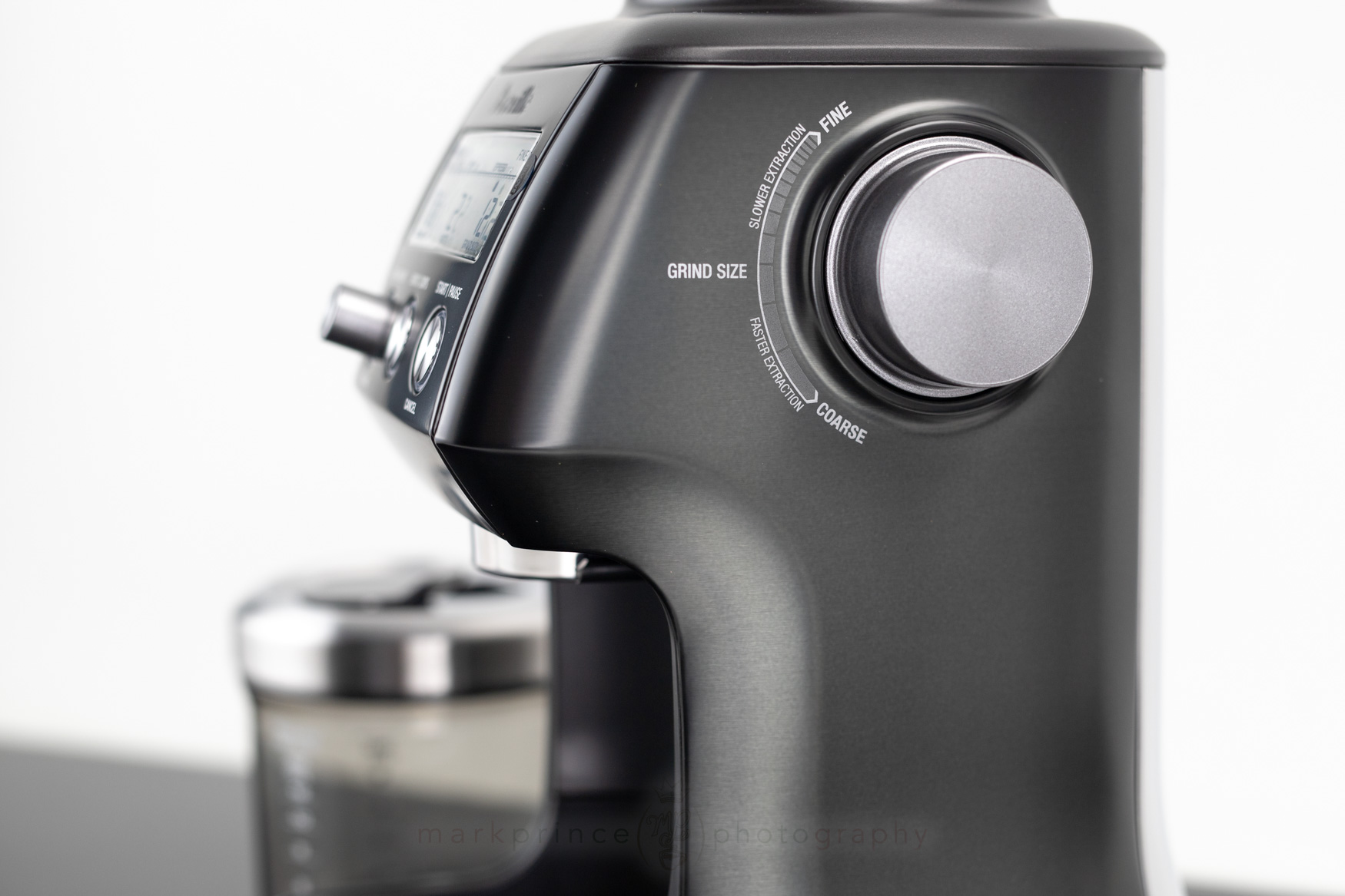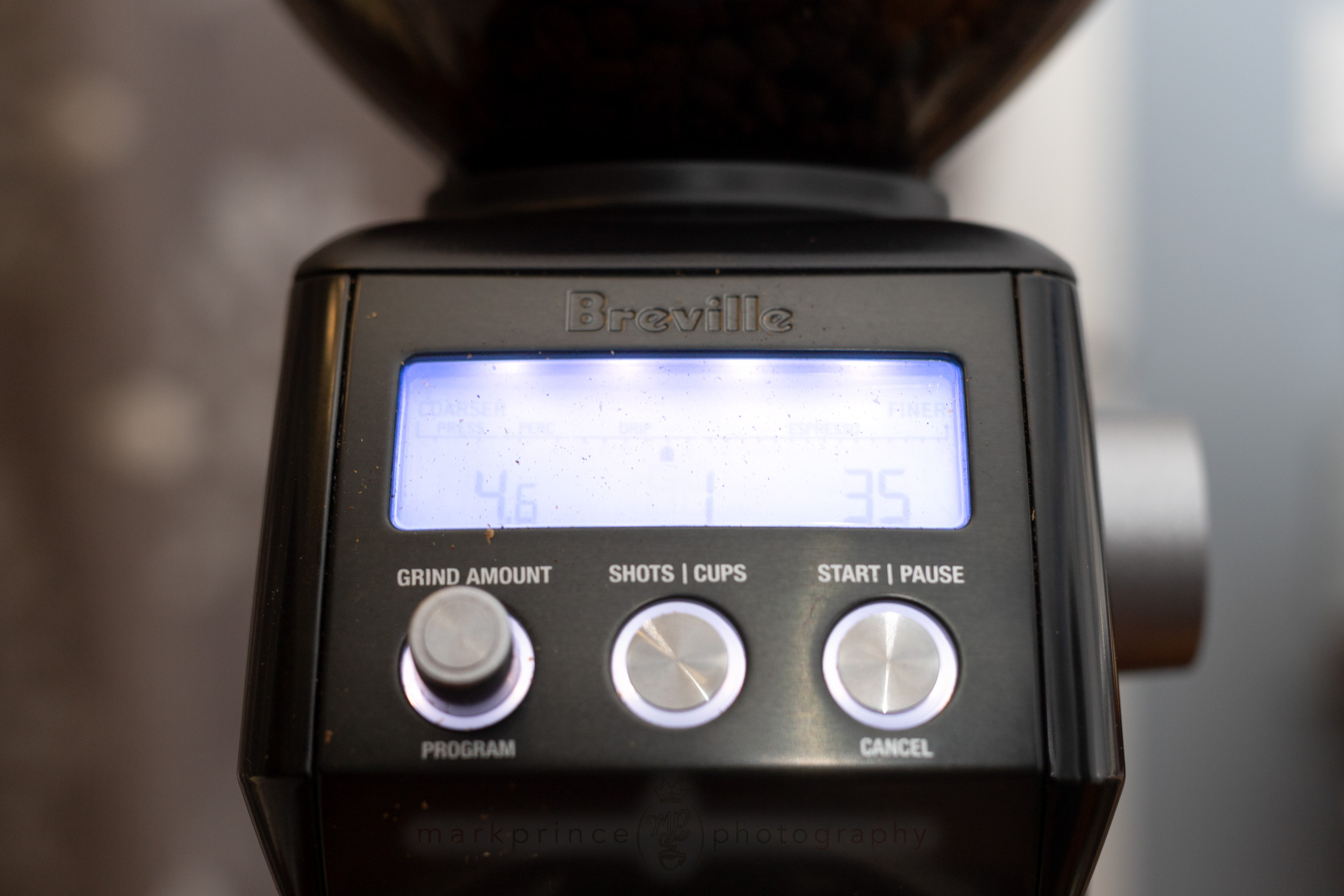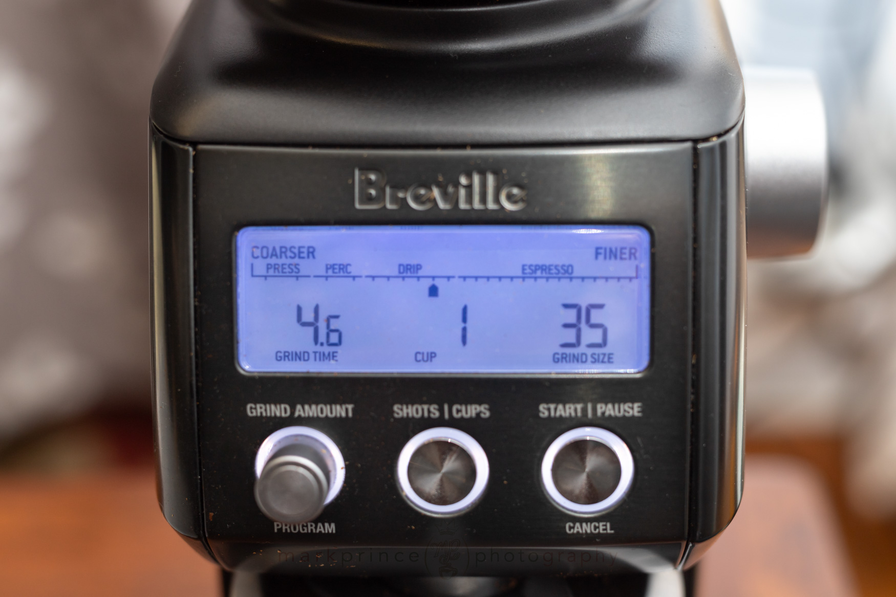 The LCD display is nicely visible at eye level when you’re looking down at the grinder from an angle, but it fades out and is impossible to read if you’re looking at it from any below angle or even straight on – this is a design flaw Breville has never addressed.