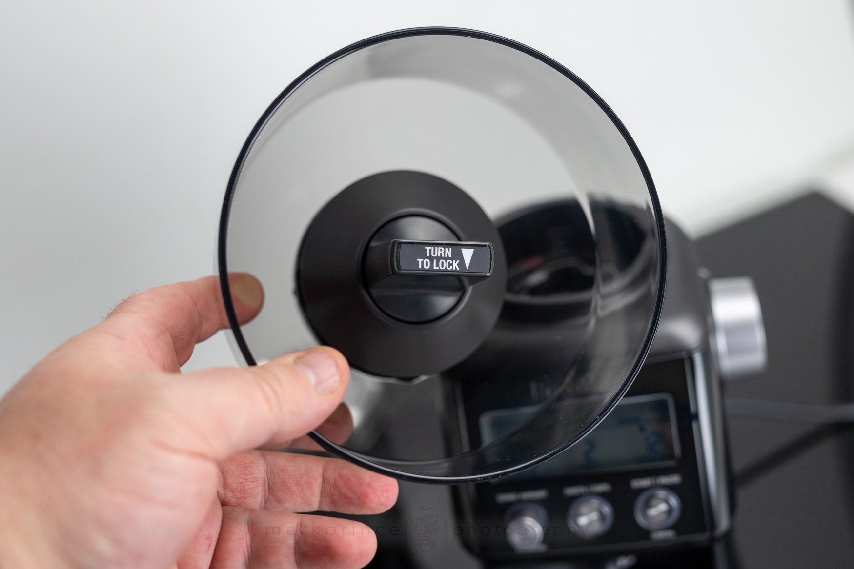 Let’s go from top to bottom in the walk through on this grinder. Right up top, the lid for the bean hopper is an airtight design, which does provide a small bit of aid in keeping the beans in the hopper fresh.