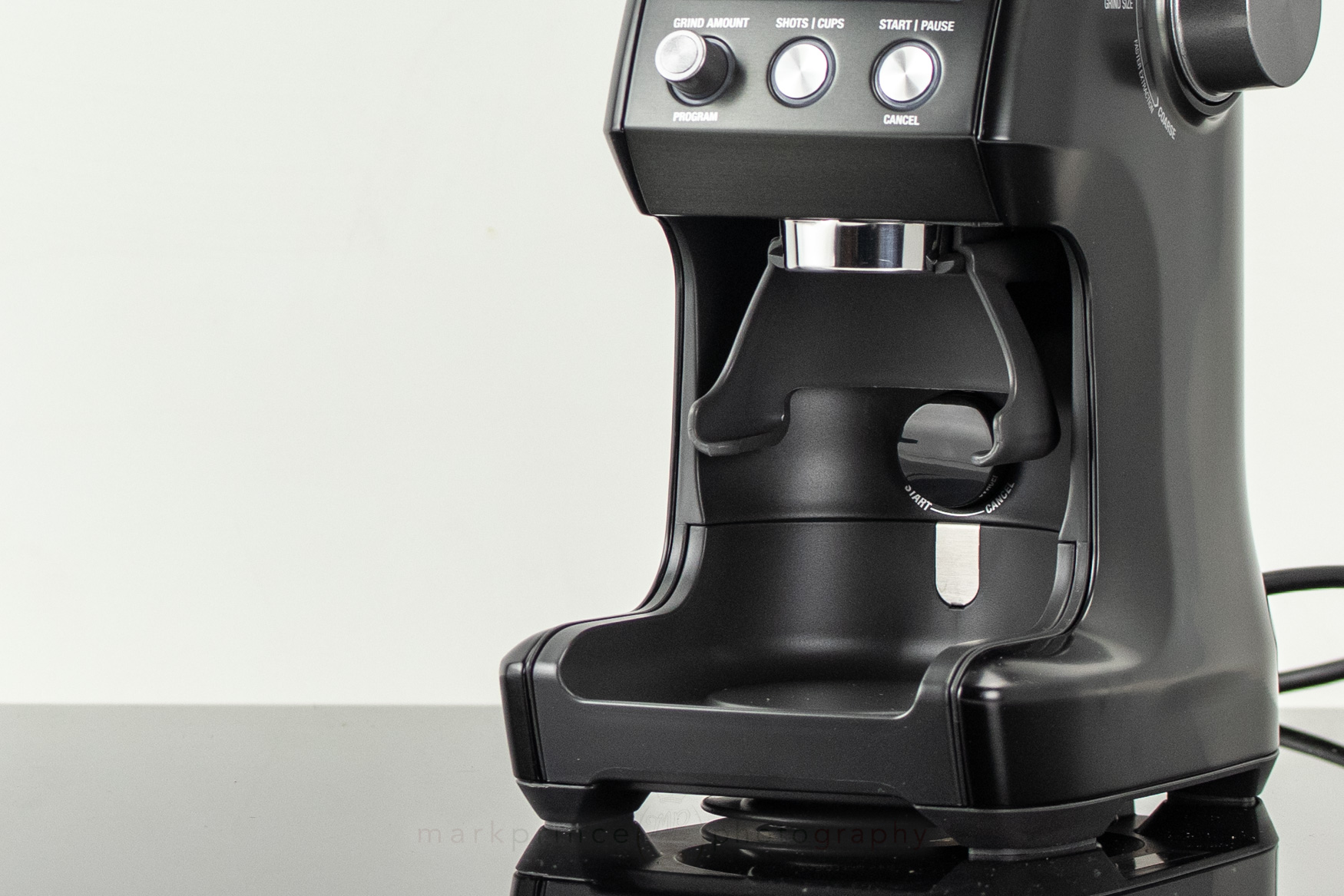 One of the best features if you just want to grind directly into a portafilter is the pause function. Once you’ve dialed in your grind time delivering your approximate chosen dose of espresso ground coffee, you can choose to pause the grinding midway, to adjust, settle, or knock down the bed of coffee. As long as you have the portafilter back in place under 10 seconds, and press the button again (including the portafilter-activated button), the grinder remembers where it left off in the timer, and completes the grind.