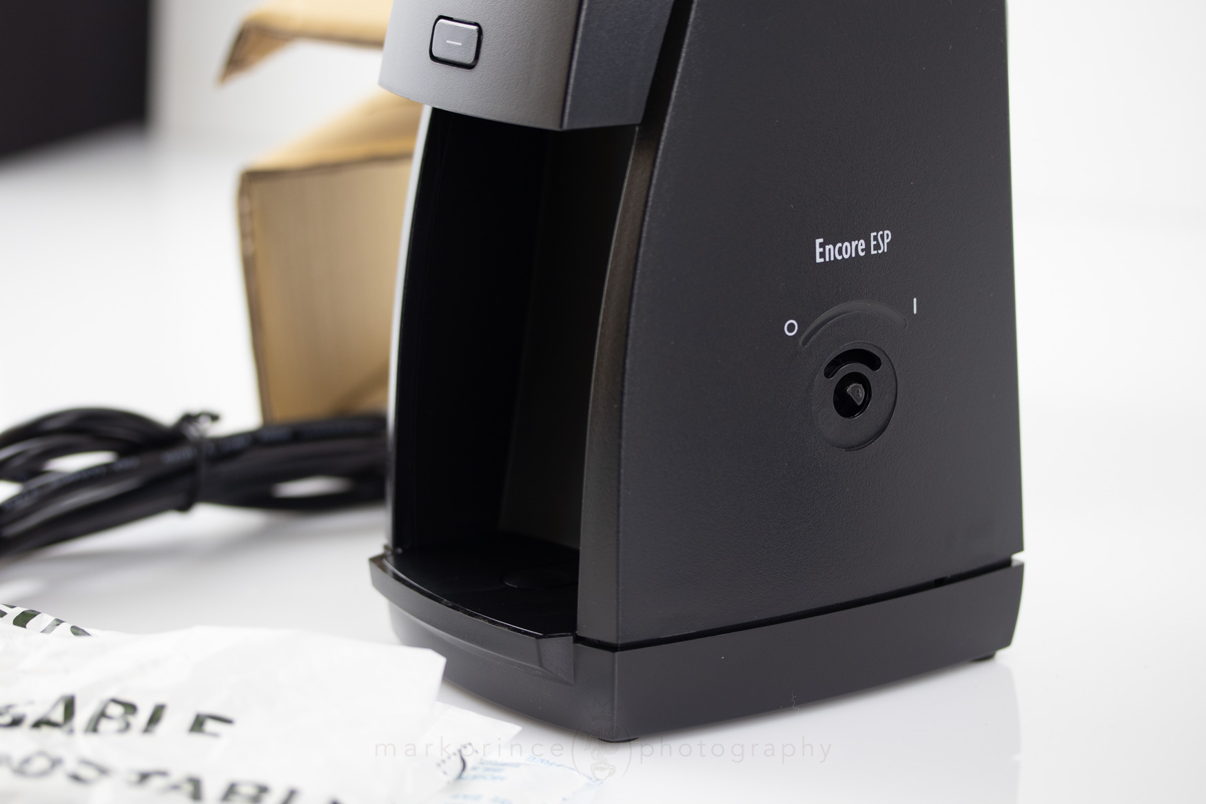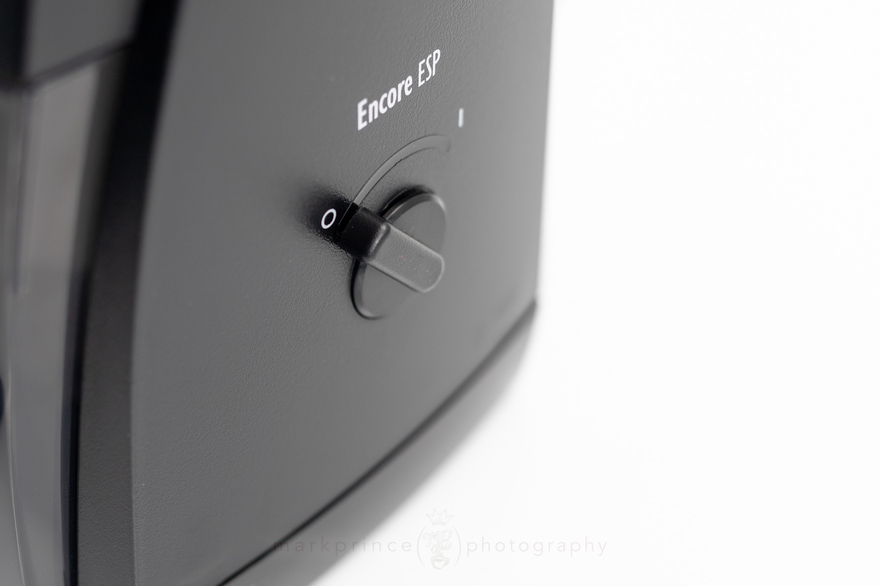 Like the Encore before it, the Encore ESP has three control points: the on/off dial on the right side, the pulse button up front, and the main hopper rotates to select the grind level. The pulse button feels stiffer on the Encore ESP compared to previous models. The on off switch on the side now has an extended tab, pointing at its operating position.