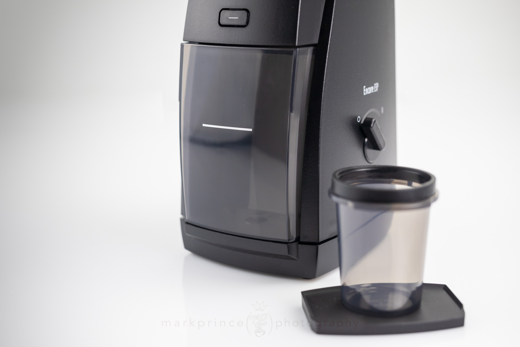 When it comes down to it, I’d rather use this grinder with the full bean hopper up top, and the dosing cup setup below. Just be aware there is going to be some grind “spray” if you use the dosing cup. It gets on the counter, gets into the grind bin area, and can get messy. I also attached Introvert Make’s bellows to the Encore ESP’s bean hopper lid, and that helps a lot with retention; especially for grinds coarser than espresso.