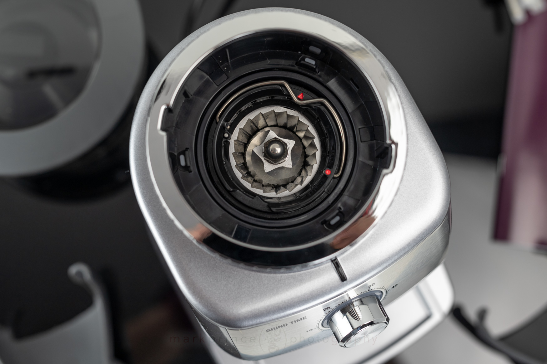 The grind adjustment collar looks chrome plated at first glance, but it’s just more plastic. There are 60 grind settings, all with a tactile yet subtle “dedent” click to indicate moving from one grind setting to the next.