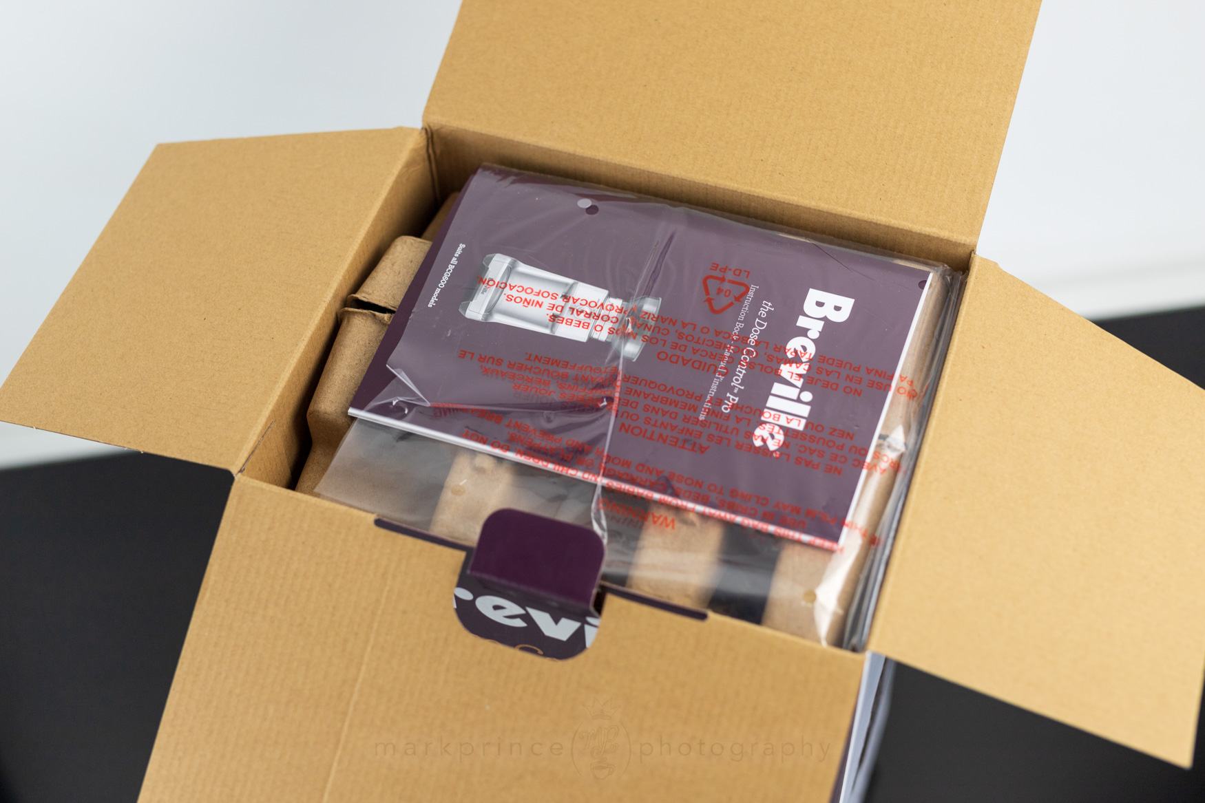 The Dose Control Pro grinder itself, and accessories are wrapped in plastic bags. This could easily be changed to compostable bags at some point and gain enviro points for Breville.